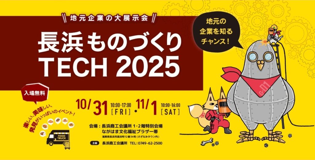 当社は、長浜商工会議所主催の長浜ものづくりTECH2025にブース出展いたします📢